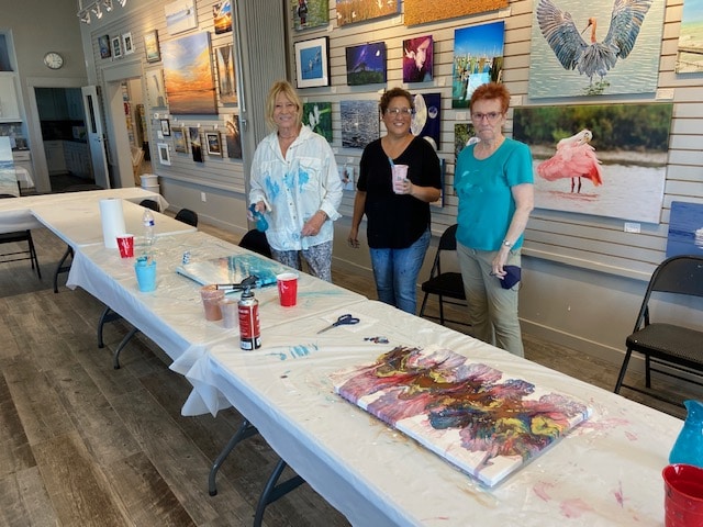 Vanessa also teaches Fluid Art classes at Padre Island Art Gallery and the Art Center of Corpus Christi. Her work is exhibited at both of these galleries as well as My Coastal Home and Island Dream Waves. Classes are on Tuesdays 12:00 -3:00. $65/70- Supplies provided.