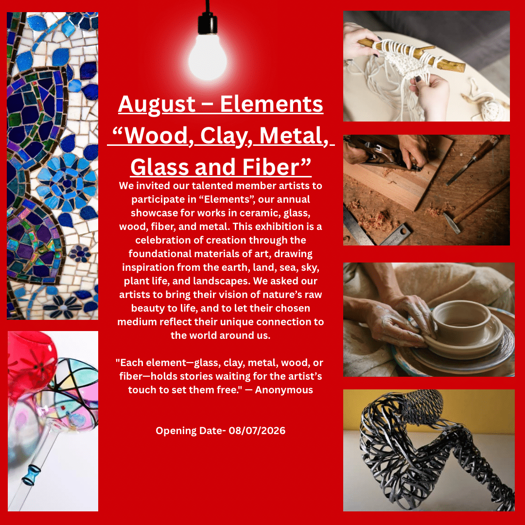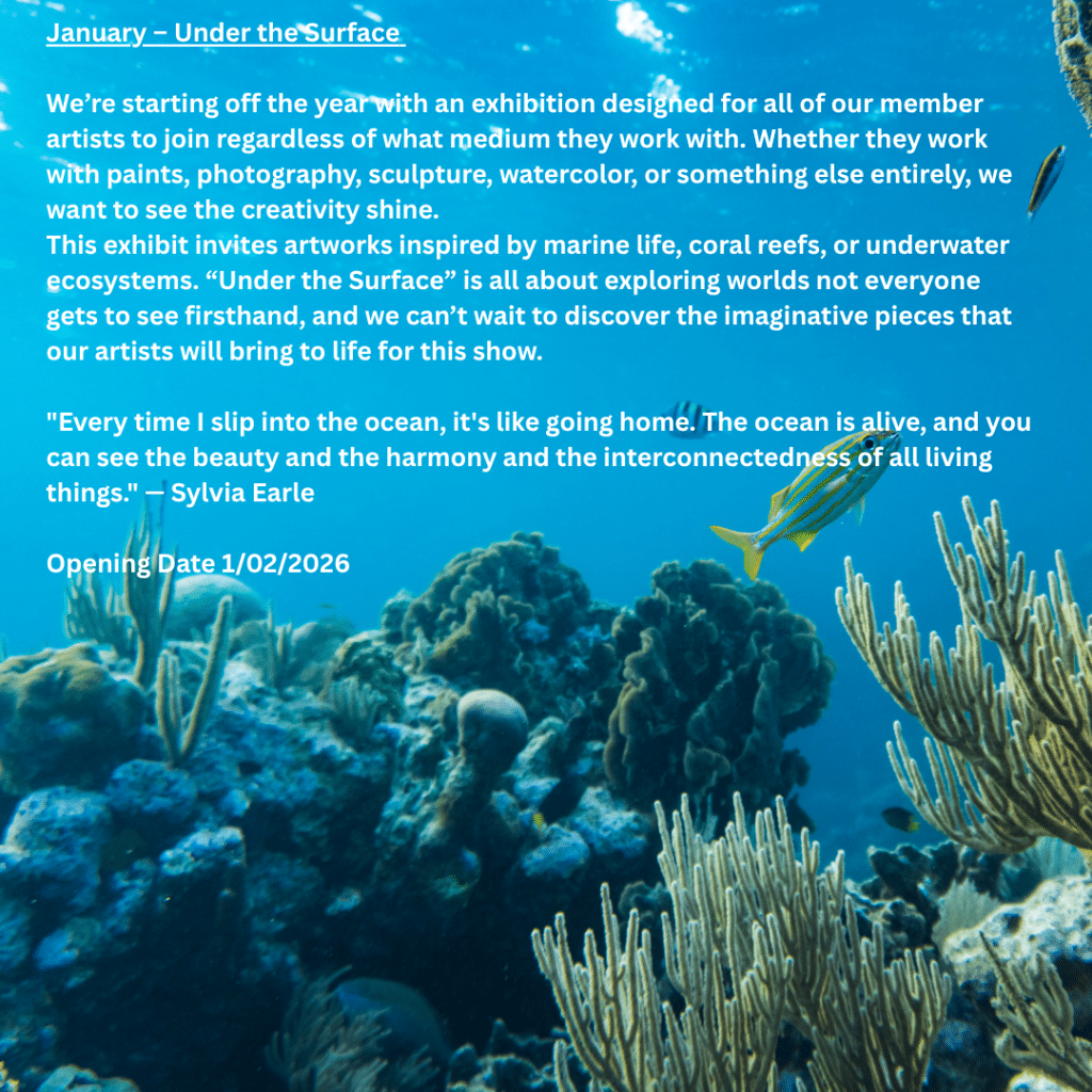 This popular monthly event is held on the first Friday of each month starting at 5:30 p.m. It is free to all and includes refreshments, live music, great art and artists! Guests are invited to enjoy the latest works of art on view, and they sometimes vote on artwork favorites.