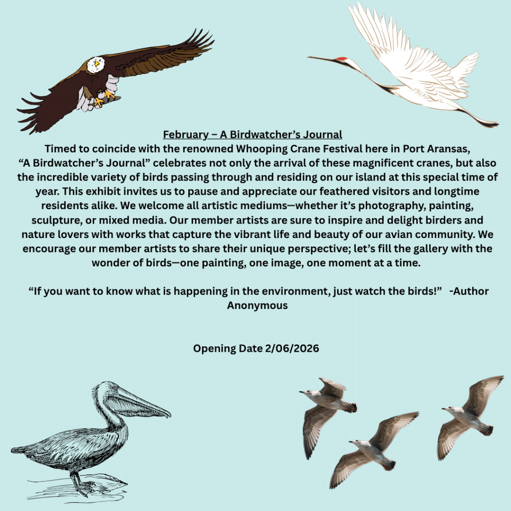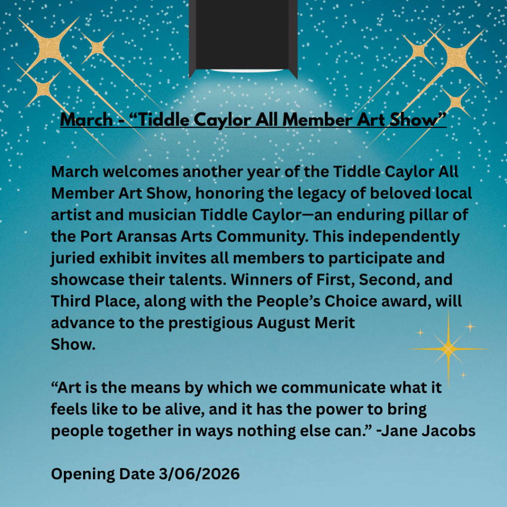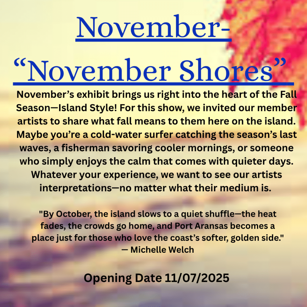 The Port Aransas Art Center hosts events for all ages, year-round. Please refer to the menu in the margin for the latest event and activity dates!